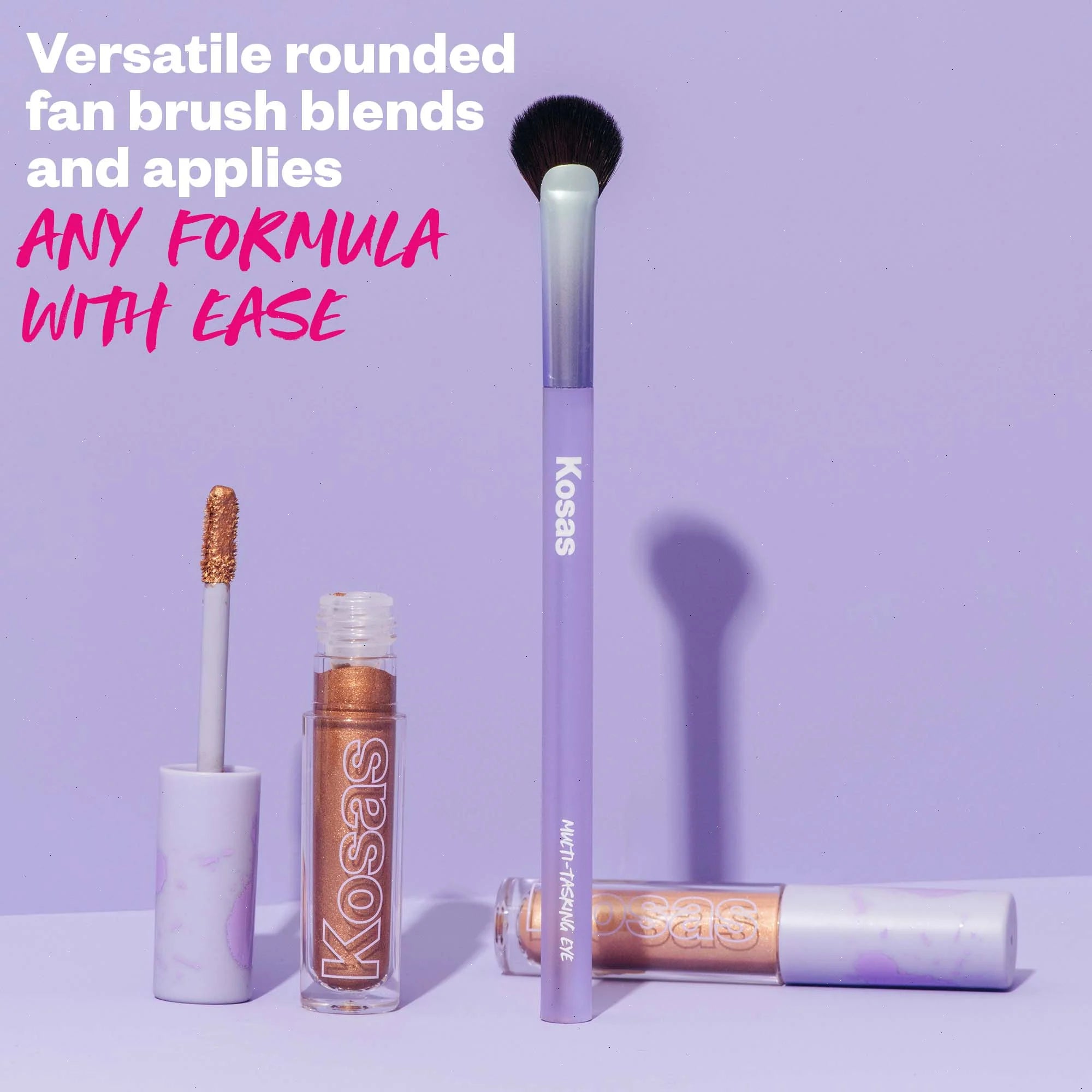 Vegan rounded fan brush for the dreamiest eyeshadow application ever. Versatile shape and size lets you easily apply and blend cream and powder formulas.
